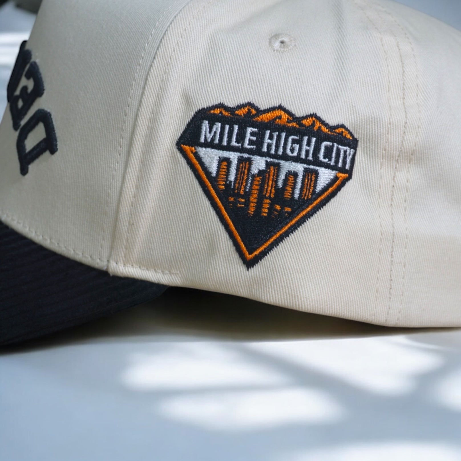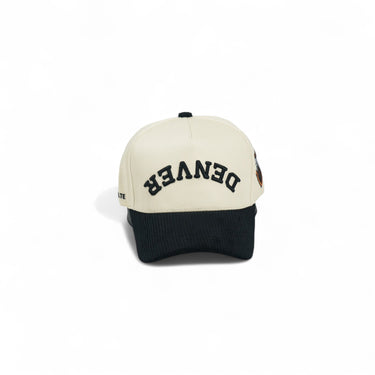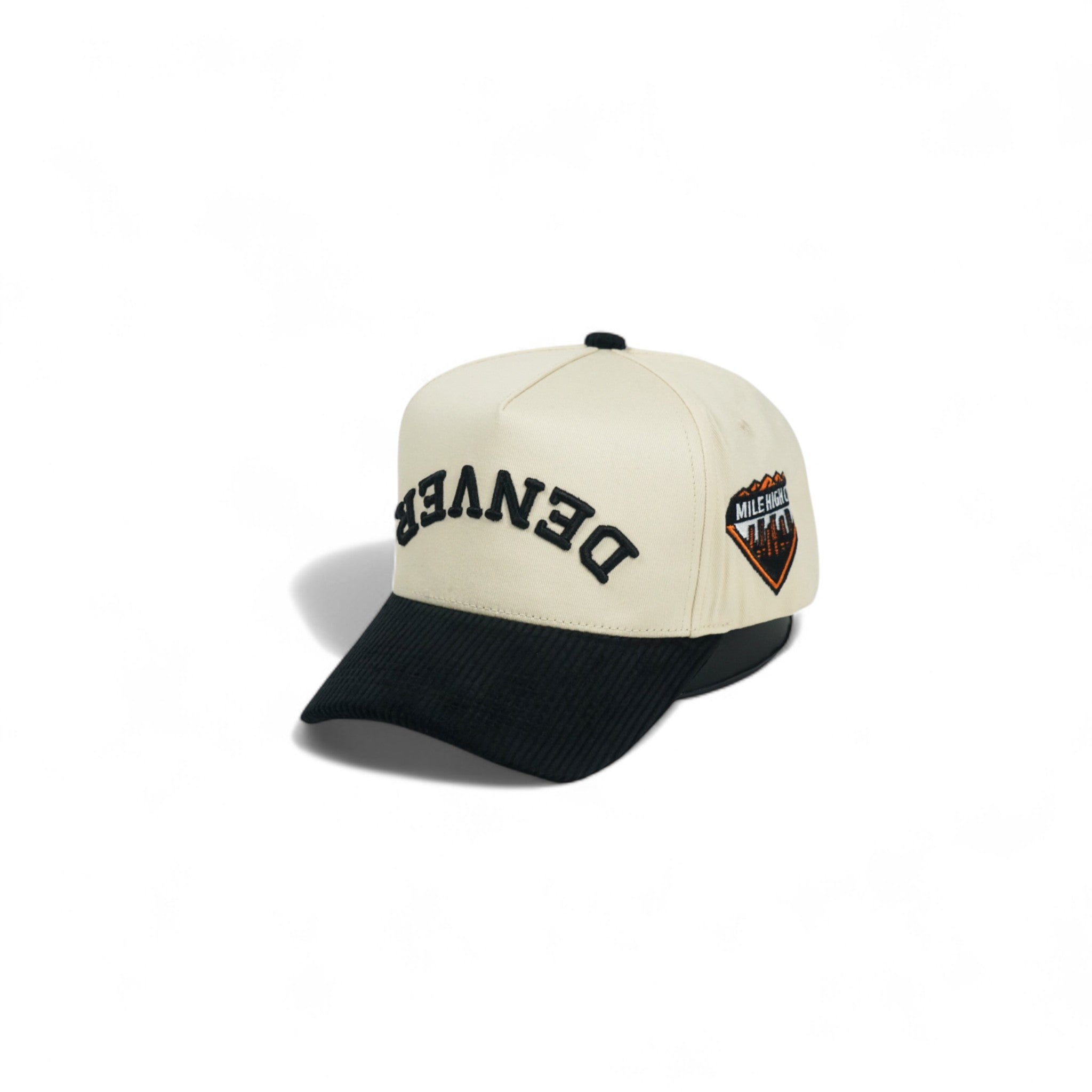 Introducing Flip the Script Denver, a 5 panel structured hat featuring a unique flipped Denver logo. Also with a tan/beige crown and a black corduroy brim. Show off your hometown pride with the orange and black mile high city graphic on the side. Elevate your style with the perfect combination of boldness and sophistication. Limited quantities available, get yours now.
