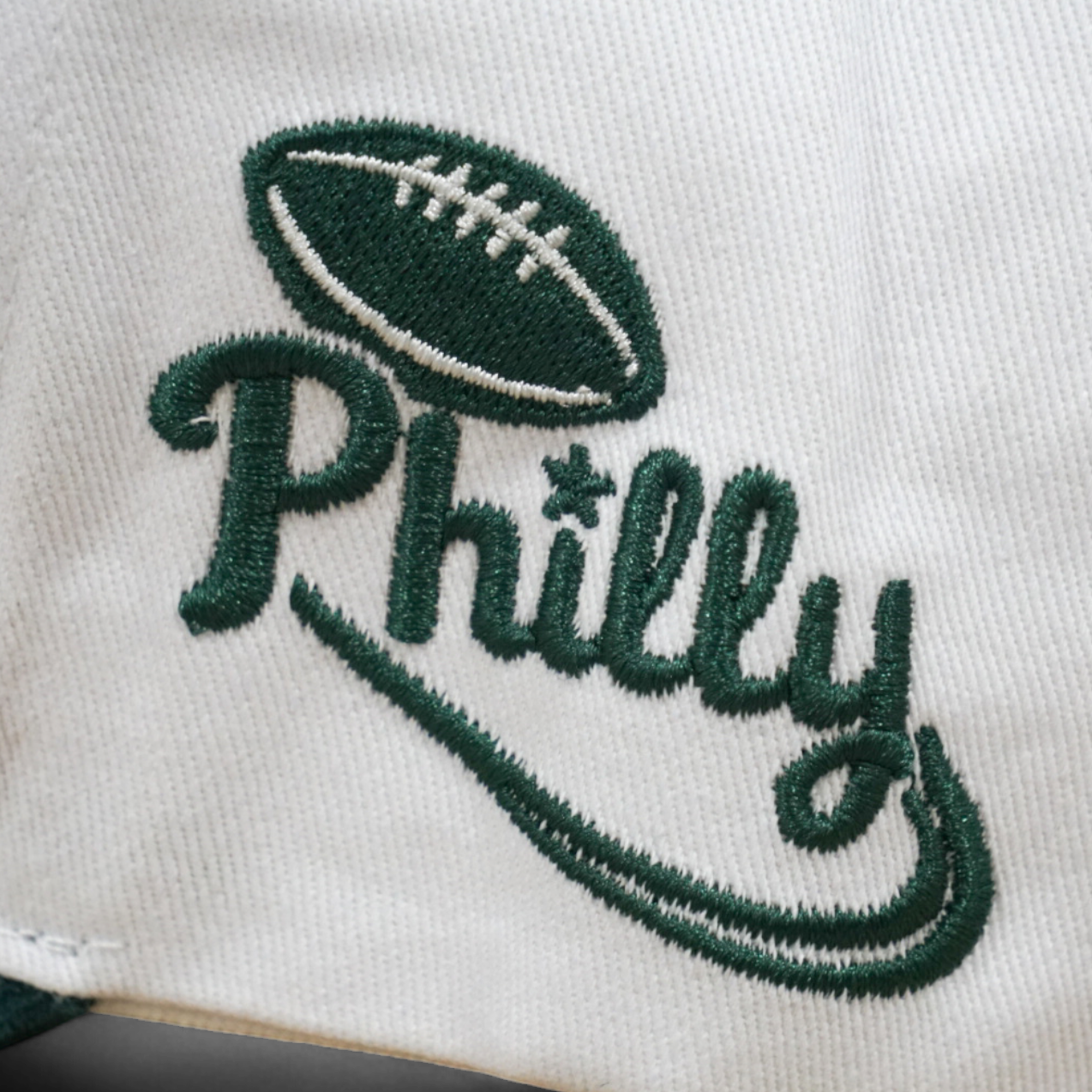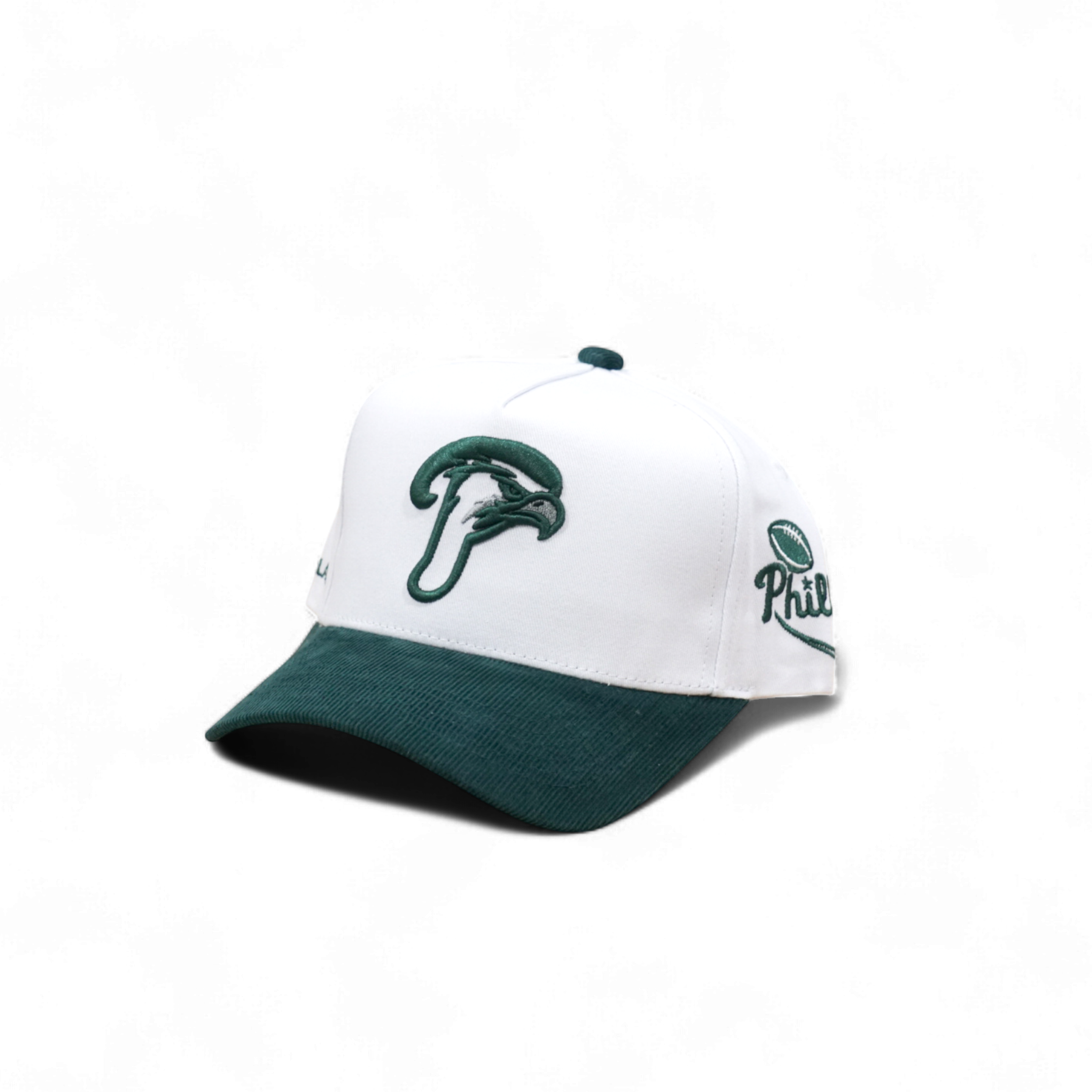 Philadelphia City 5-panel snapback with structured deep fit. White crown features embroidered front logo, Philly side graphic