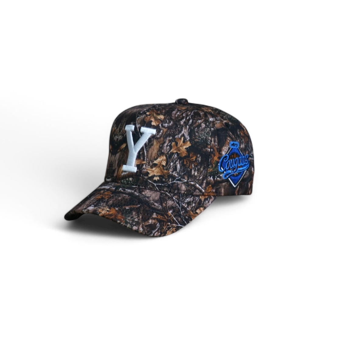 This Camo Y hat features a 5 panel structured design for a secure and comfortable fit. The unique camo fabric adds a stylish touch, while the white embroidered Y and cougars side logo showcase your team pride. Perfect for any outdoor enthusiast or sports fan.