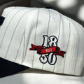 This 5-panel structured hat pairs a clean white crown with sharp black pinstripes and a bold U front logo. The black brim brings a sleek finish, while the 1850 side logo pays tribute to deep-rooted tradition. Designed with a firm, premium fit, this cap blends classic collegiate energy with a modern streetwear twist.