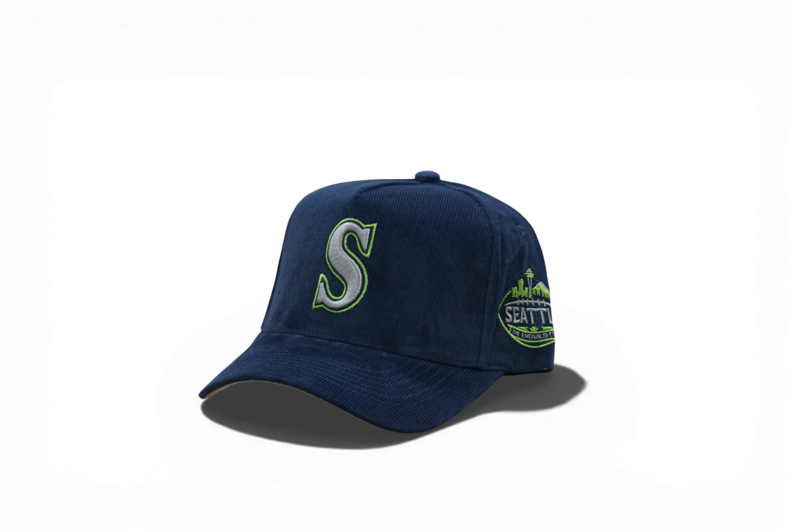The Seattle City Hat combines classic construction with refined details. Five-panel design with deep fit structure provides comfortable all-day wear, while navy corduroy fabric offers durability and texture. Gray suede underbrim adds a premium touch, and the Seattle side logo keeps your city pride visible. Snapback closure adjusts to fit most head sizes.