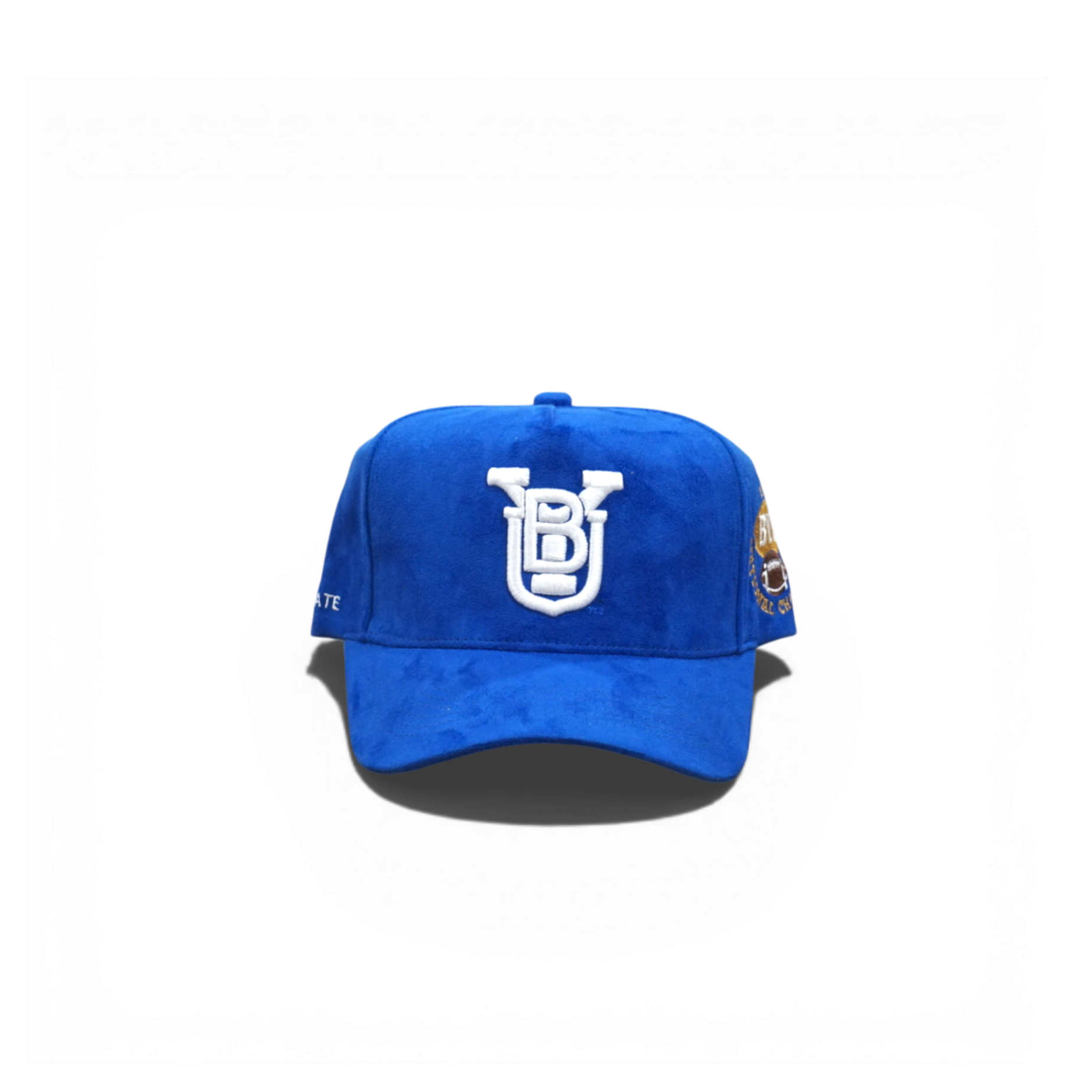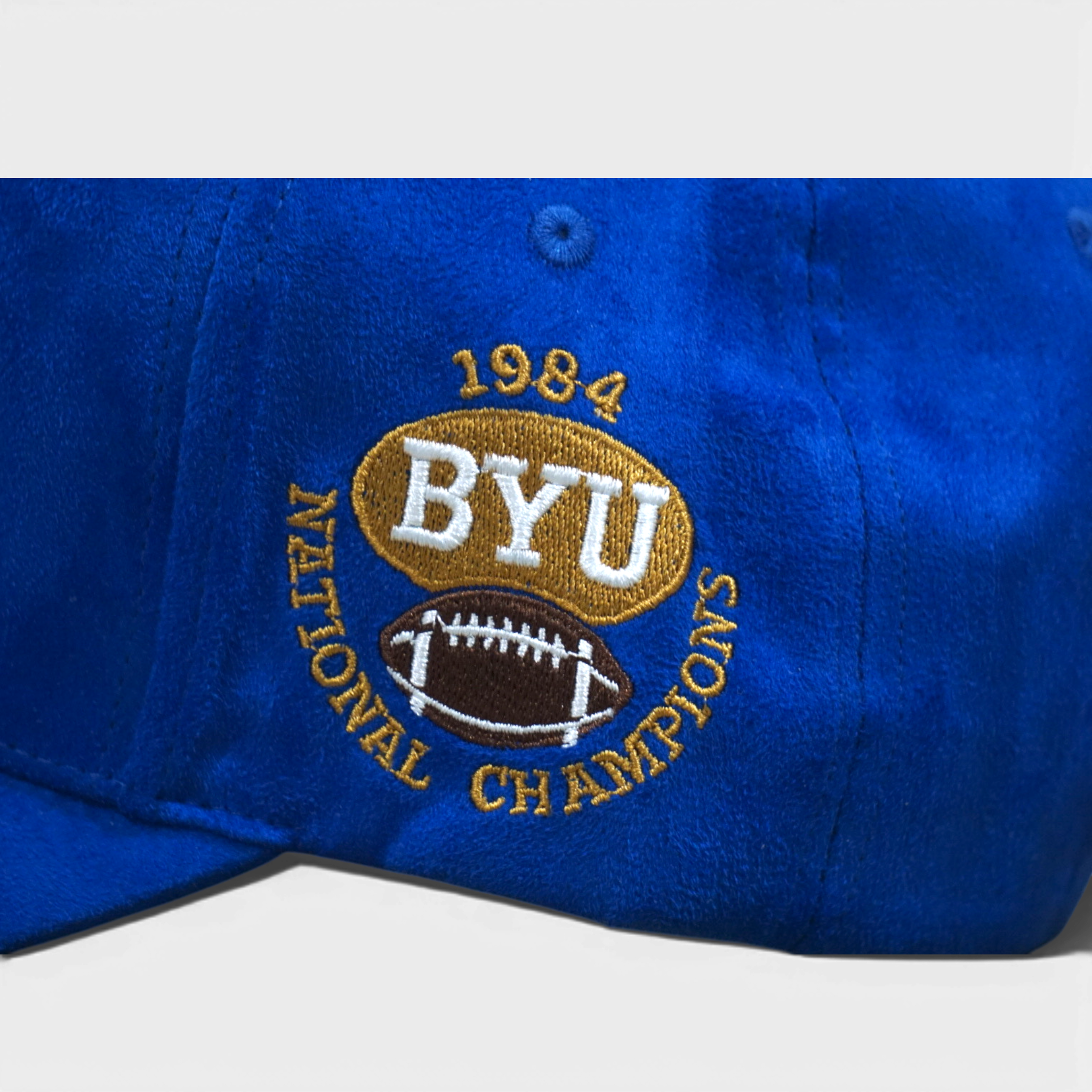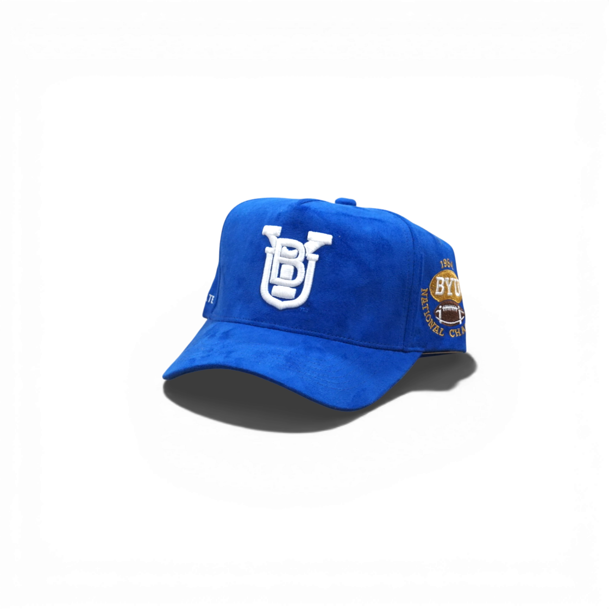 Structured five-panel snapback in royal suede with stacked BYU front logo and National Champion side embroidery. Deep fit design offers a classic, tailored look. Adjustable snapback closure for a comfortable fit.